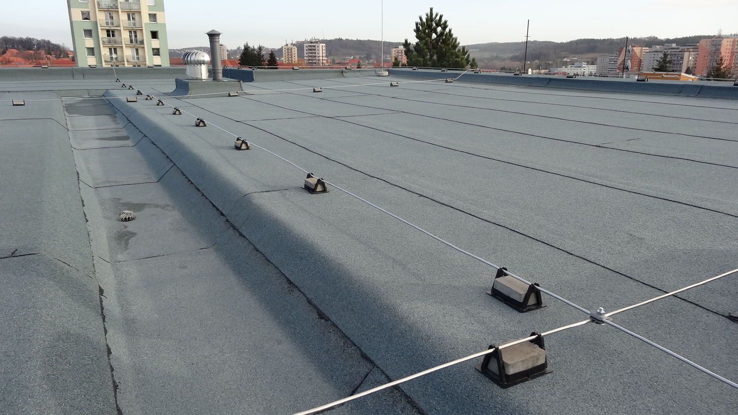 Na střechy aplikujeme fóliové systémy Fatrafol případně modifikované asfaltové pásy Elastek